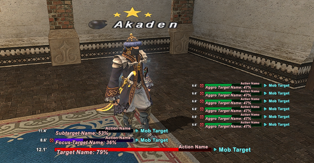 - aggro'd mobs can now be displayed as a stack of health bars + their action and attention