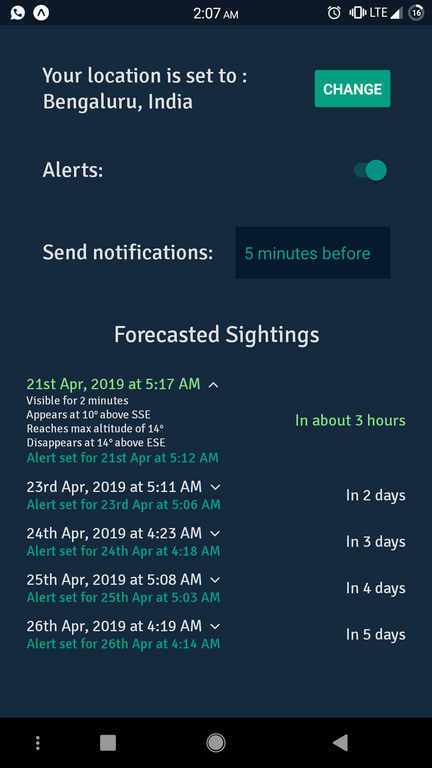 The time interval relative to the flyby, before which the alert is to be sent, is configurable within the application.