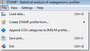 Now load the profile file (metaphlan_merged_all.spf and the metadata file (hmp_map.txt) files by going to "File->load data" within STAMP: