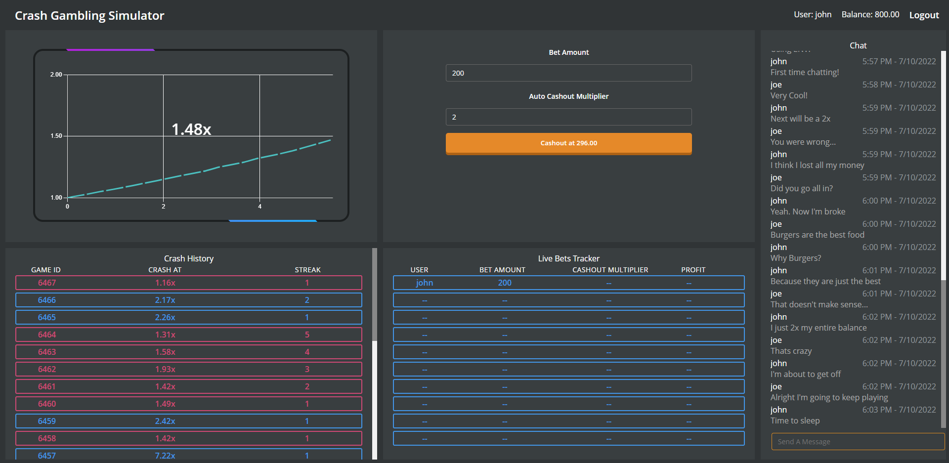 A professional recreation of the popular online casino game "crash" with accurate casino odds. Built with modern web technologies and best practices.