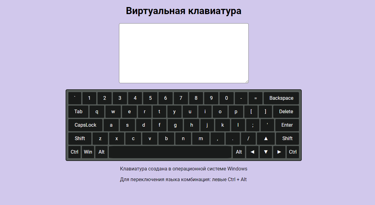 A virtual keyboard application built entirely with JavaScript, SCSS, and HTML. This project dynamically generates all DOM elements and provides a fully functional, interactive keyboard with multi-language support, animations, and seamless integration between virtual and physical keyboards.