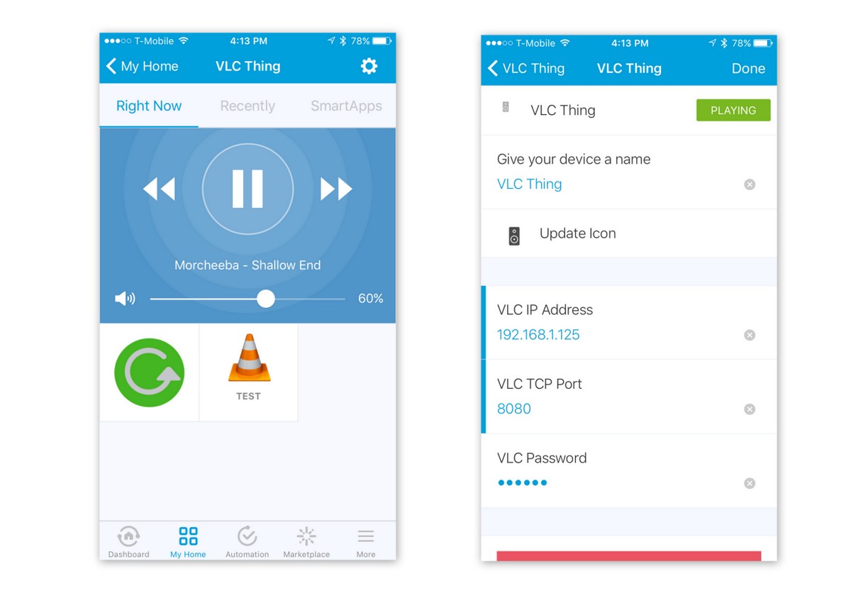 4. Configure VLC Thing device in SmartThings Mobile App