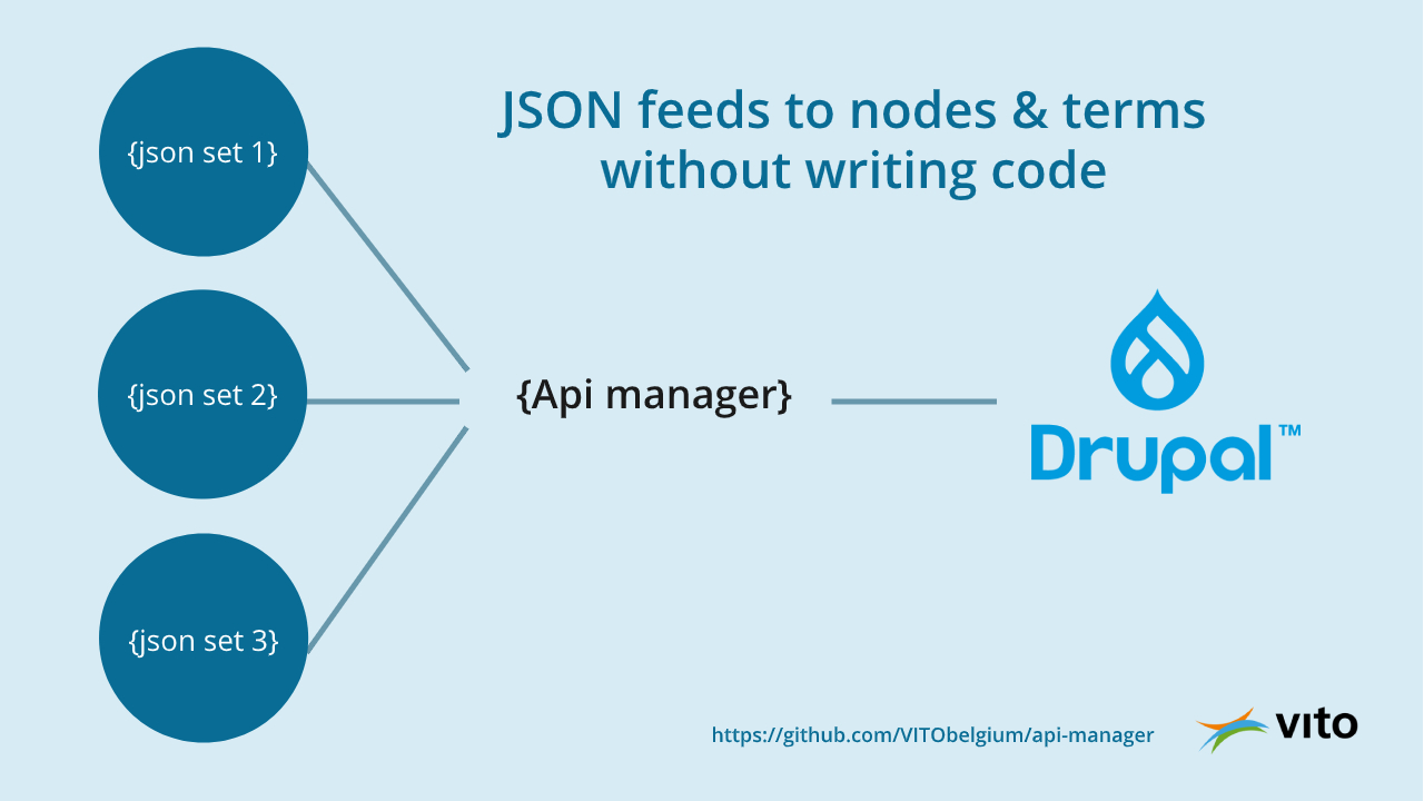 This drupal 8 & 9 module can be used to synchronize (add, update and remove automatically) JSON feeds without having to write any code.