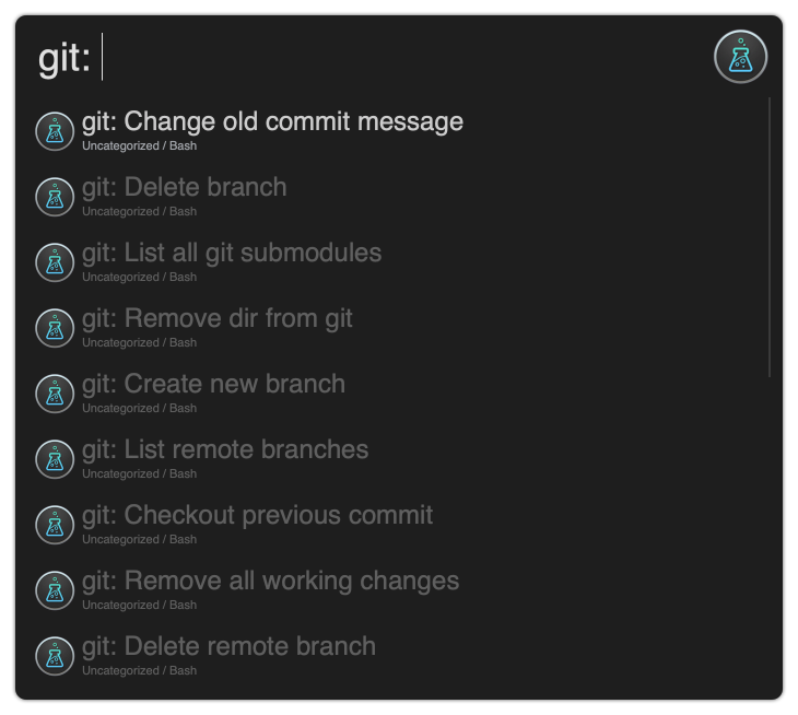 - Alfred is a powerful launcher that you can program to show anything you want. It saved me a lot of time in my life.