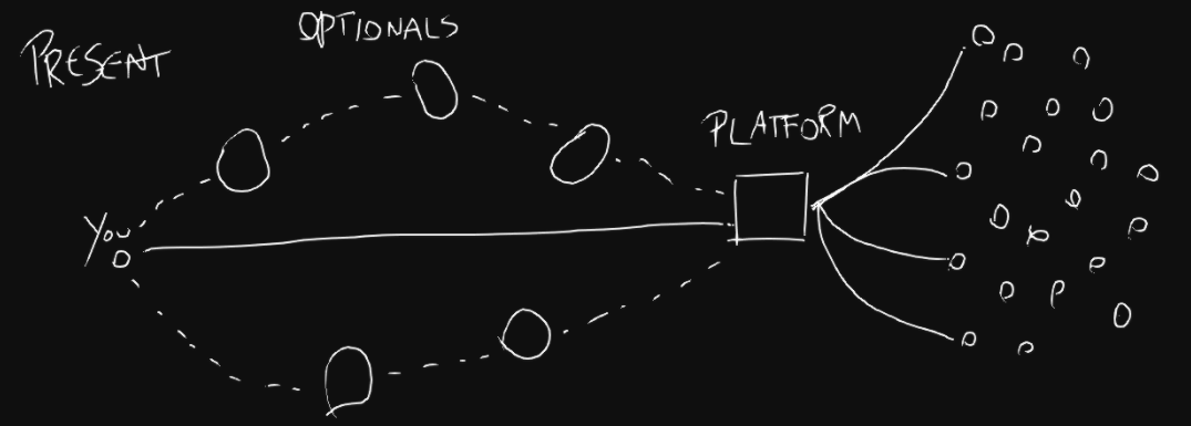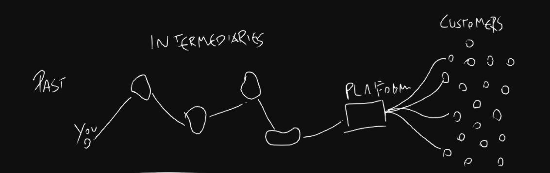 These intermediaries represented a chain that connected you to a platform that then distributed your work to customers. Each link in the chain was a company and you were likely represented by an individual in that company. A real person with a career and a family to look after.