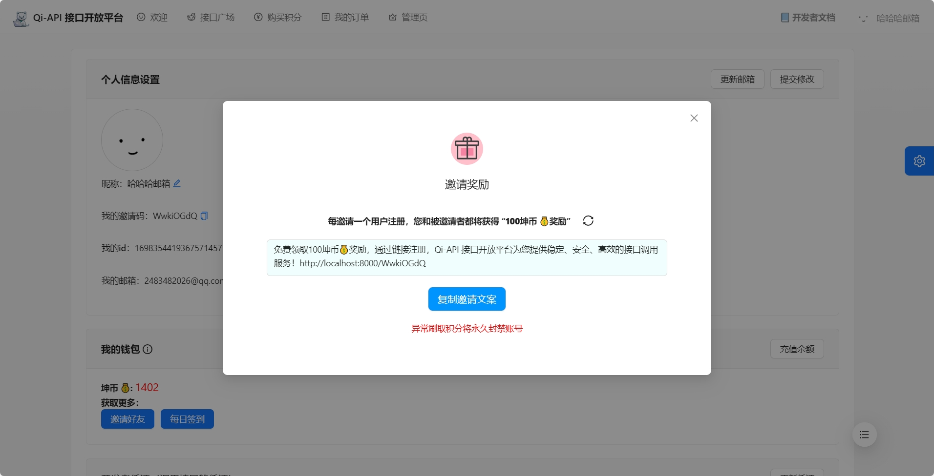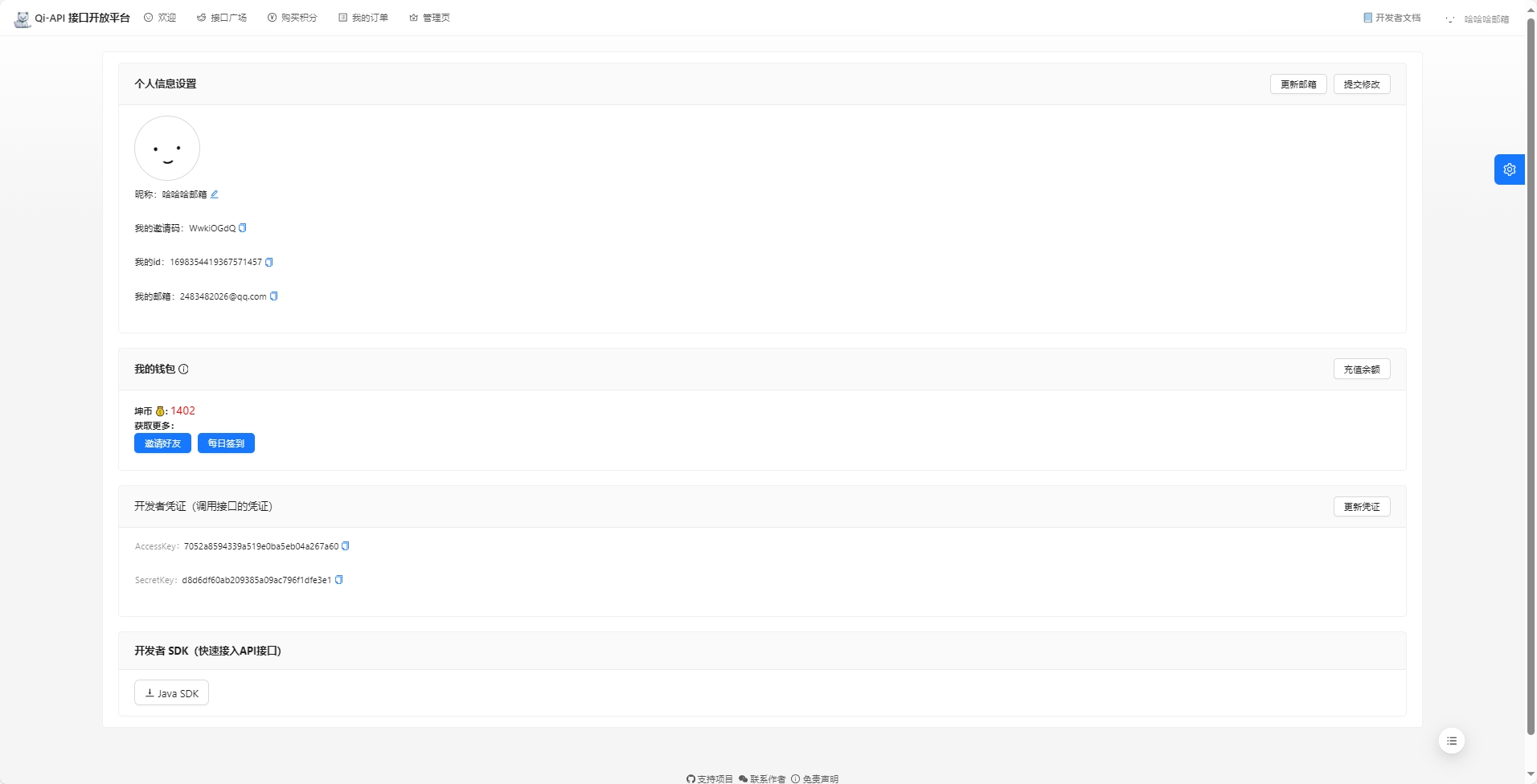 Qi-API 接口开放平台是一个为用户和开发者提供全面API接口调用服务的平台 🛠