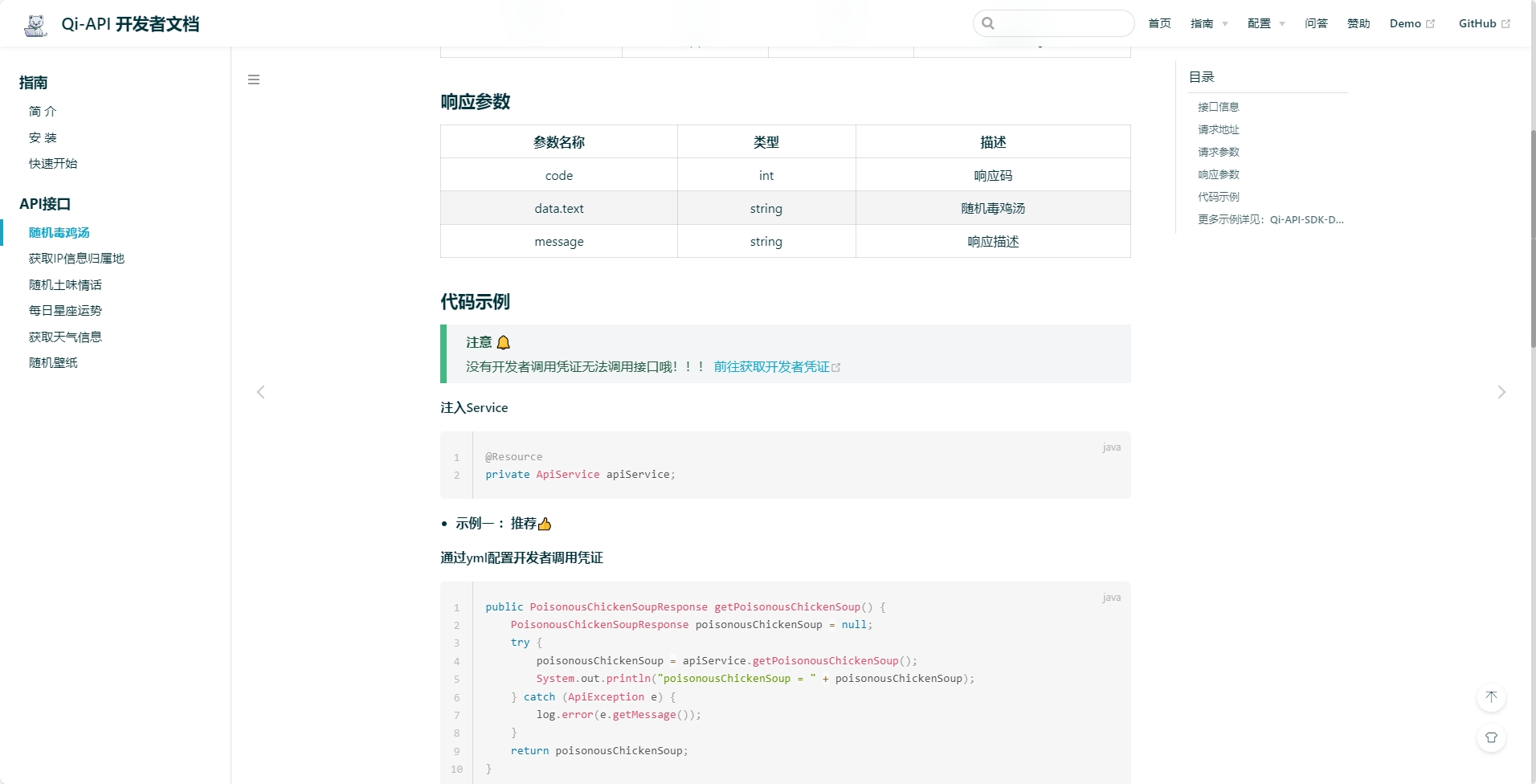 💻 作为开发者 我们提供了客户端SDK: Qi-API-SDK, 通过开发者凭证即可将轻松集成接口到您的项目中,实现更高效的开发和调用。