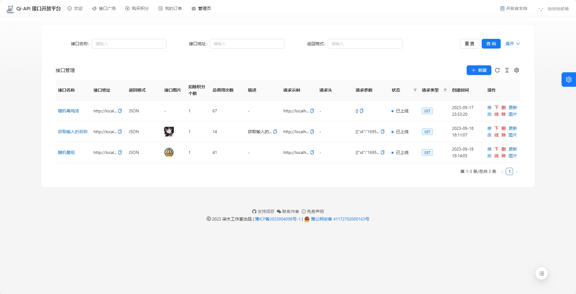 🤝 您可以将自己的接口接入到Qi-API 接口开放平台平台上,并发布给其他用户使用。 您可以管理和各个接口,以便更好地分析和优化接口性能。