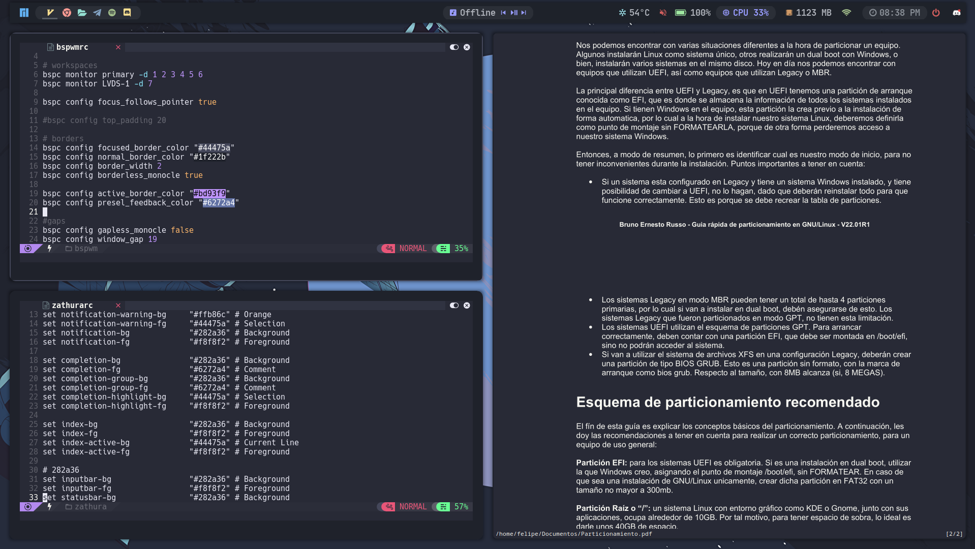 - The polybar configuration is based on siduck's dotfiles and currently I am also making use of the Nvchad configuration.