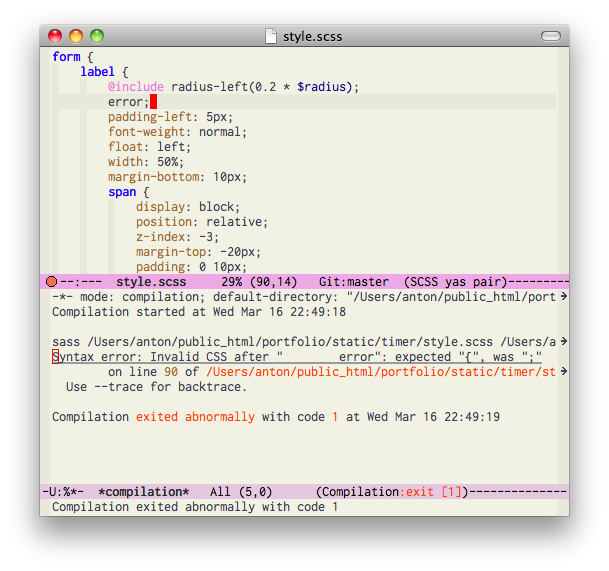 Emacs mode for SCSS files (http://sass-lang.com) forked to make a lint/check compile mode in addition to flymake and the current compile/compile on save