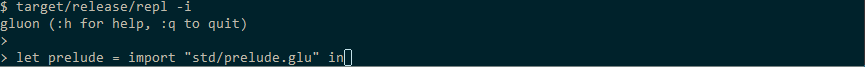 Gluon has a small executable that can be used to run gluon programs directly or in a small REPL. The REPL can be started by passing the -i flag to the built repl executable which can be run with cargo run -p gluon_repl -- -i.