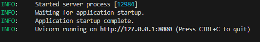 uvicorn server:app --host 0.0.0.0 --port 8000 - If everything worked fine you should see screen like this.
