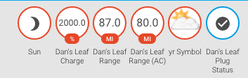 | Battery Charge and Range Support for the Nissan Leaf Carwings/Nissan Connect API. | |||
