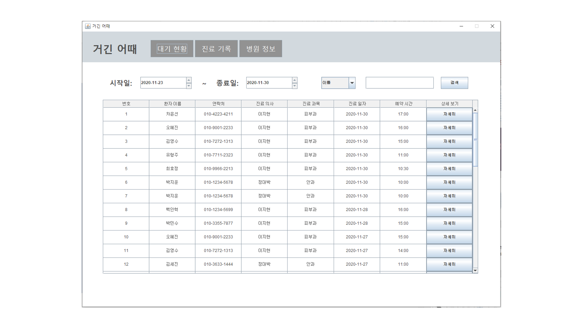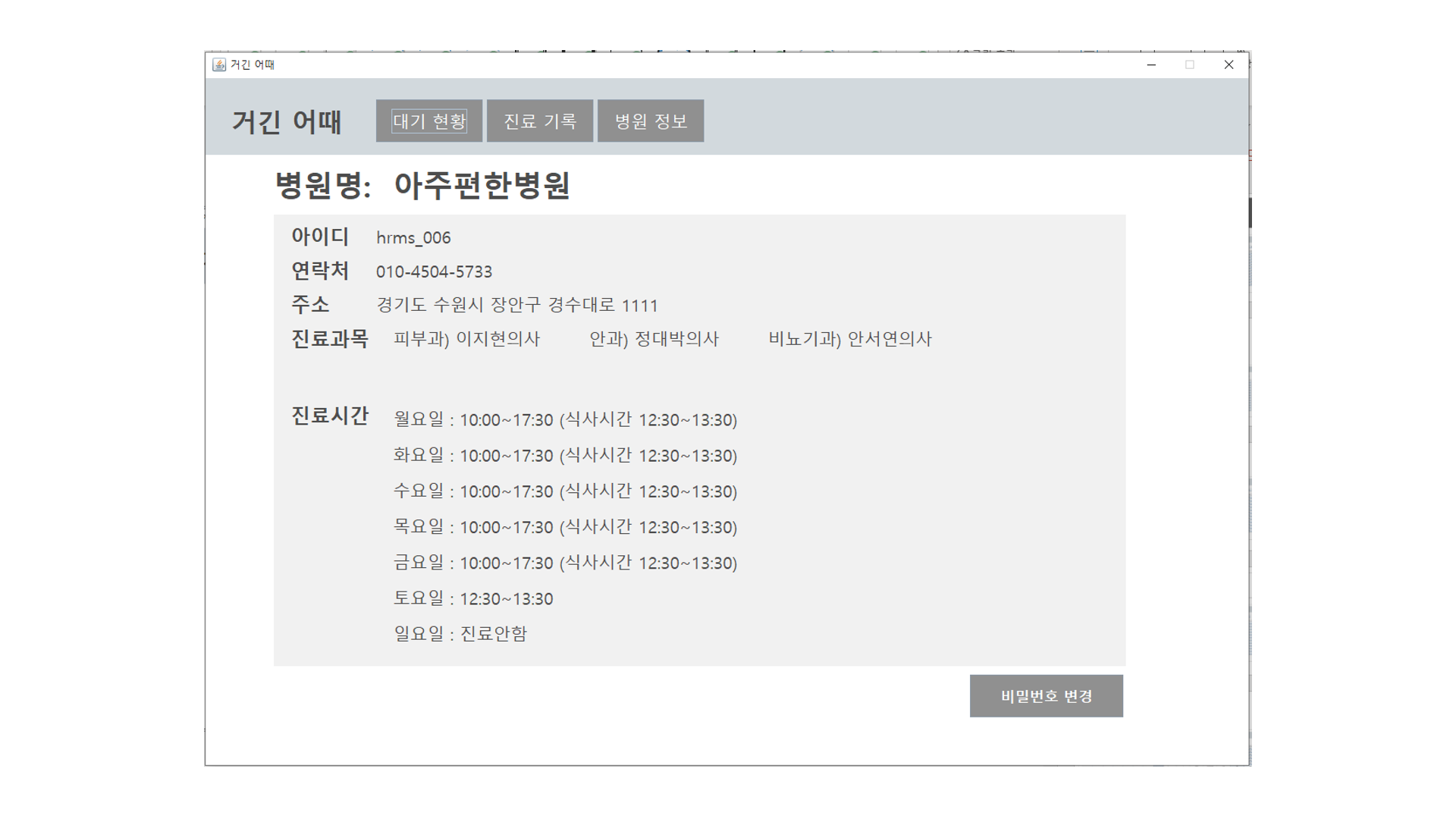 - 병원 조회