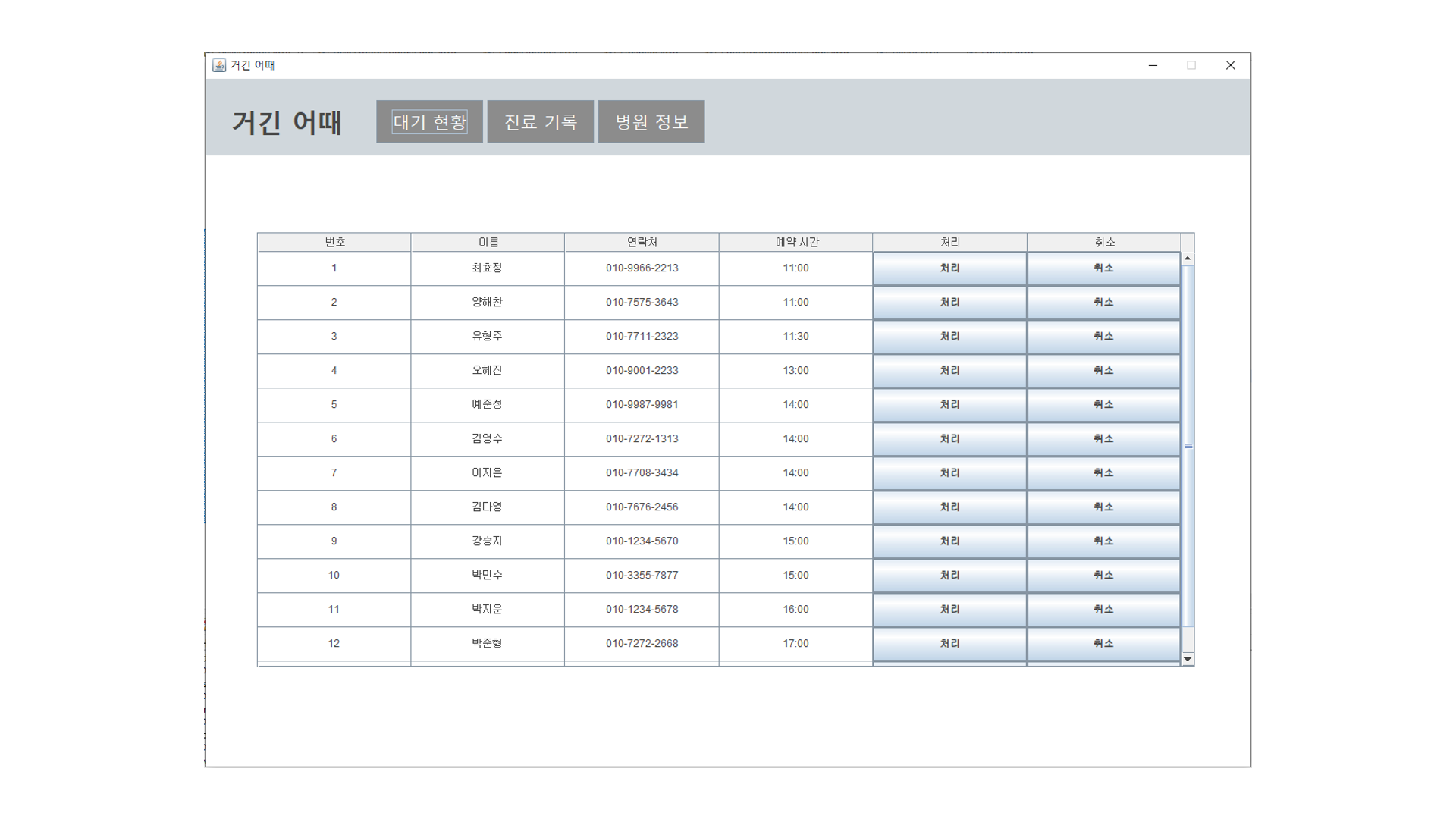 - 진료 처리 및 예약 취소