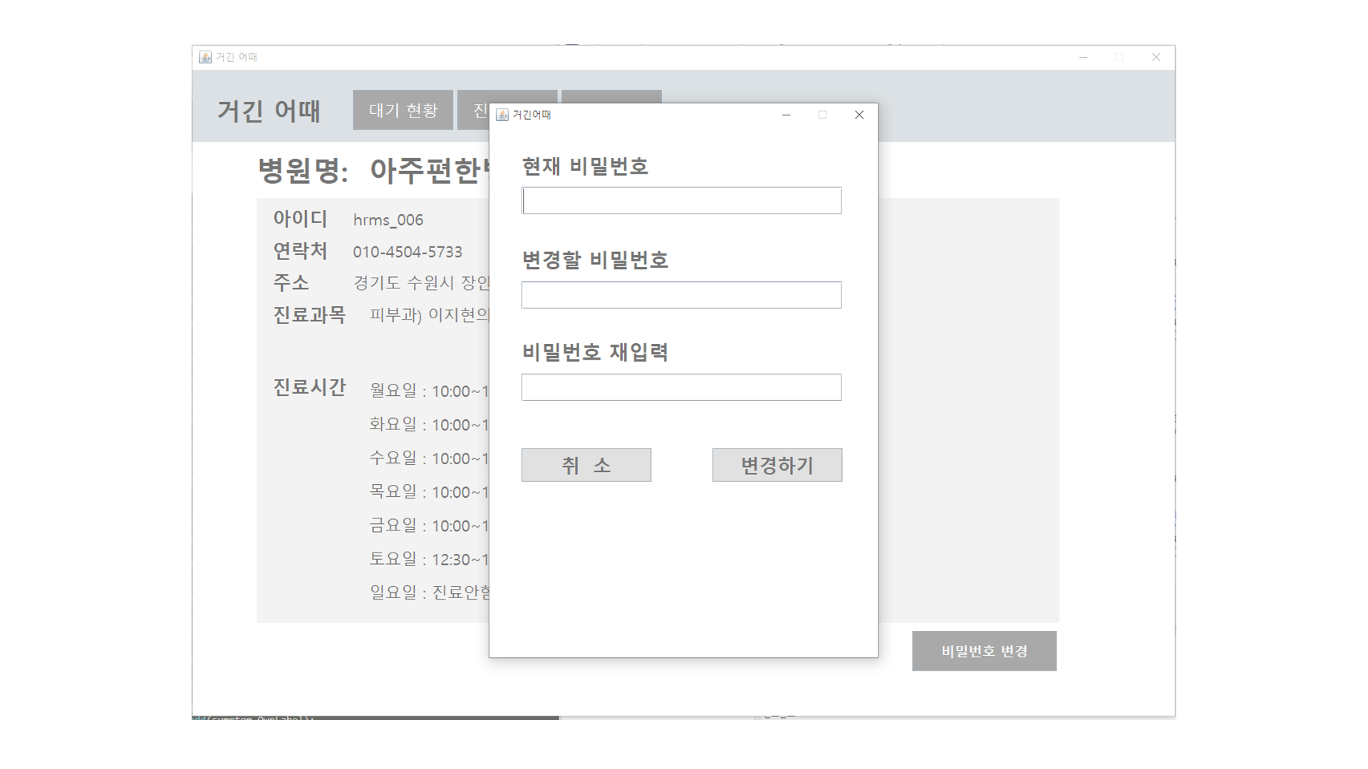 📍 병원 어플리케이션 (Github: Java_HRMS_Hospital)