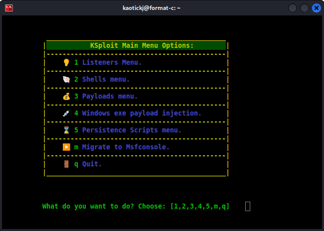 KSploit is a user friendly control panel in which to drive many metasploit tasks such as generating listeners, payloads, and persistence scripts on the fly, starting listeners, and suggesting payloads and exploits. Requires metasploit framework https://github.com/rapid7/metasploit-framework