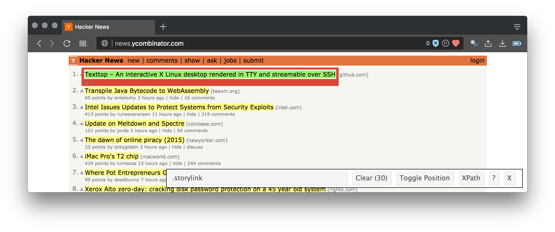 Now that we know the post headline translates to .storylink we can retrieve it with ease.