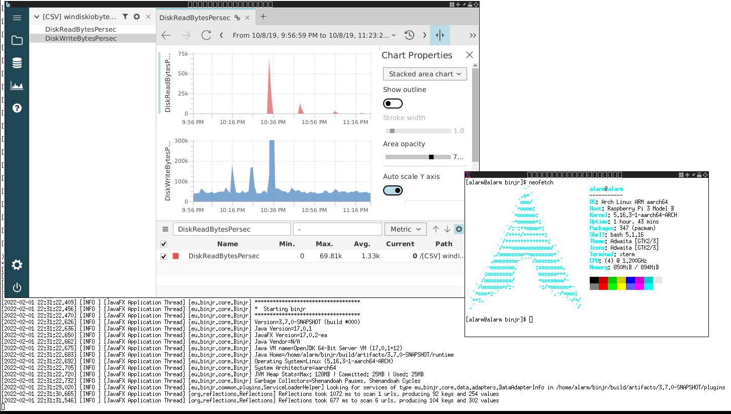 Hello everyone, Since both the OpenJDK and JavaFX are available for the ARM64 architecture (aka aarch64) on both Linux and macOS (for those models with "M1" Apple chips), it should be possible to build a version of binjr that runs natively on these platforms (i.e. without needing to go through any kind of translation layer, such as"Rosetta" on macOS). Unfortunately, I don't own the hardware need to test either of these that and the CI provider used to build the releases we upload does not offer aarch64 build agents either. So if anyone out there owns that kind of hardware and wants to help out by testing that binjr's build system works on it, please comments on this thread. I'll publish detailed instructions on how to build binjr below. |