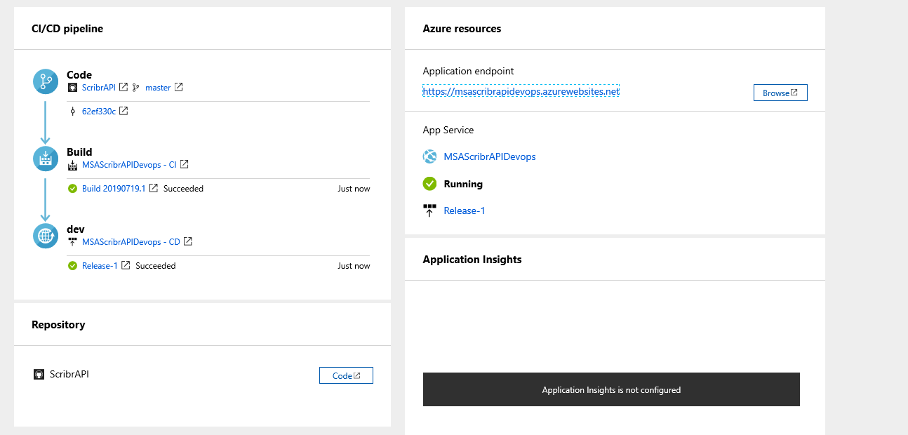 And thats about it. Go back and queue your "Pipeline" and sit back for a few minutes and watch your code get compiled and deployed right in front of your eyes - like magic! Now, whenever you commit a change to github, Azure DevOps will pick it up and run it through this pipeline and deploy it for production.