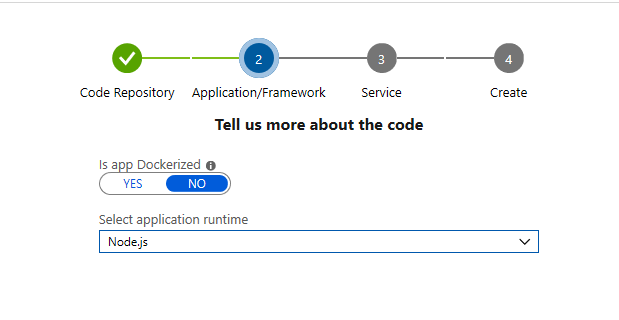 Once in the setup, you can start a project from fresh using the given templates (.NET, Node.js, PHP, etc..) but since we already have our coded previously and on Github, we are going to select the "Bring your own code" option