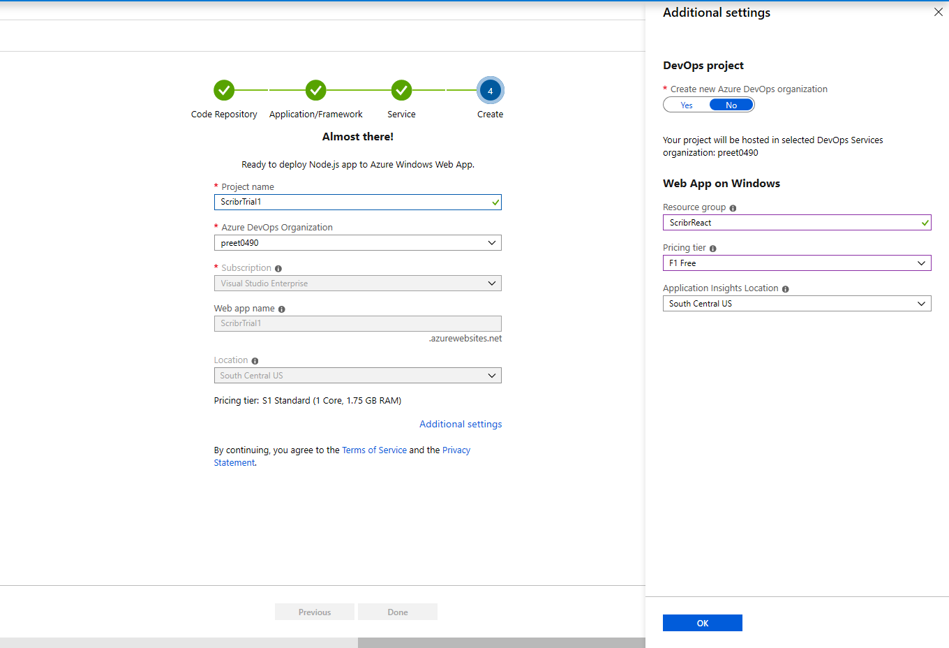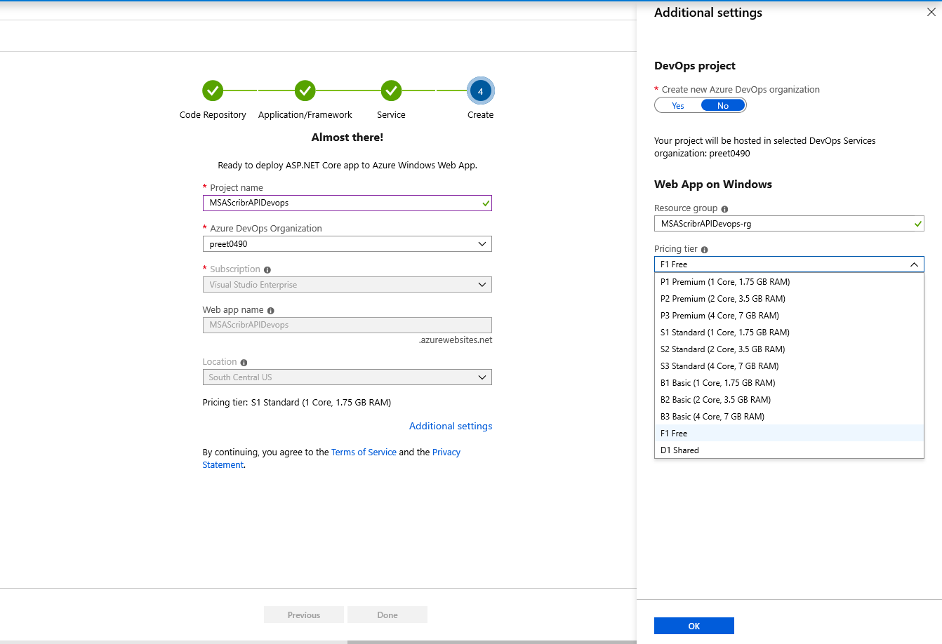 Now under Pricing tier, press "Additional Settings" and select the F1 Free tier as shown in the illustration below.