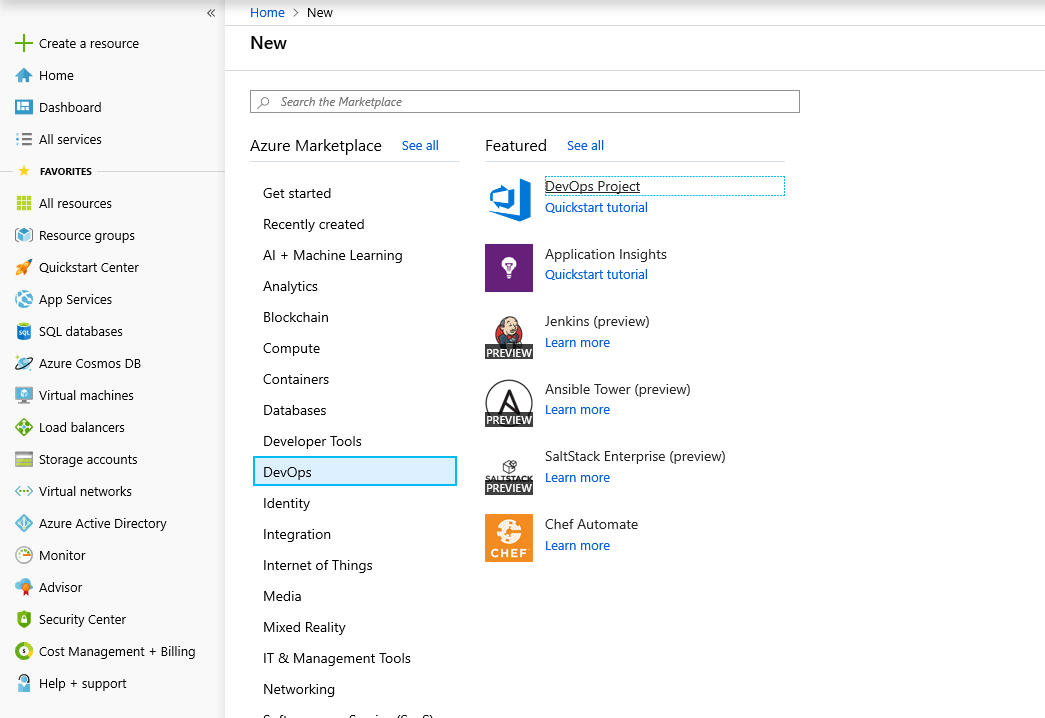 Get started by clicking "Create Resource" -> DevOps -> DevOps Project