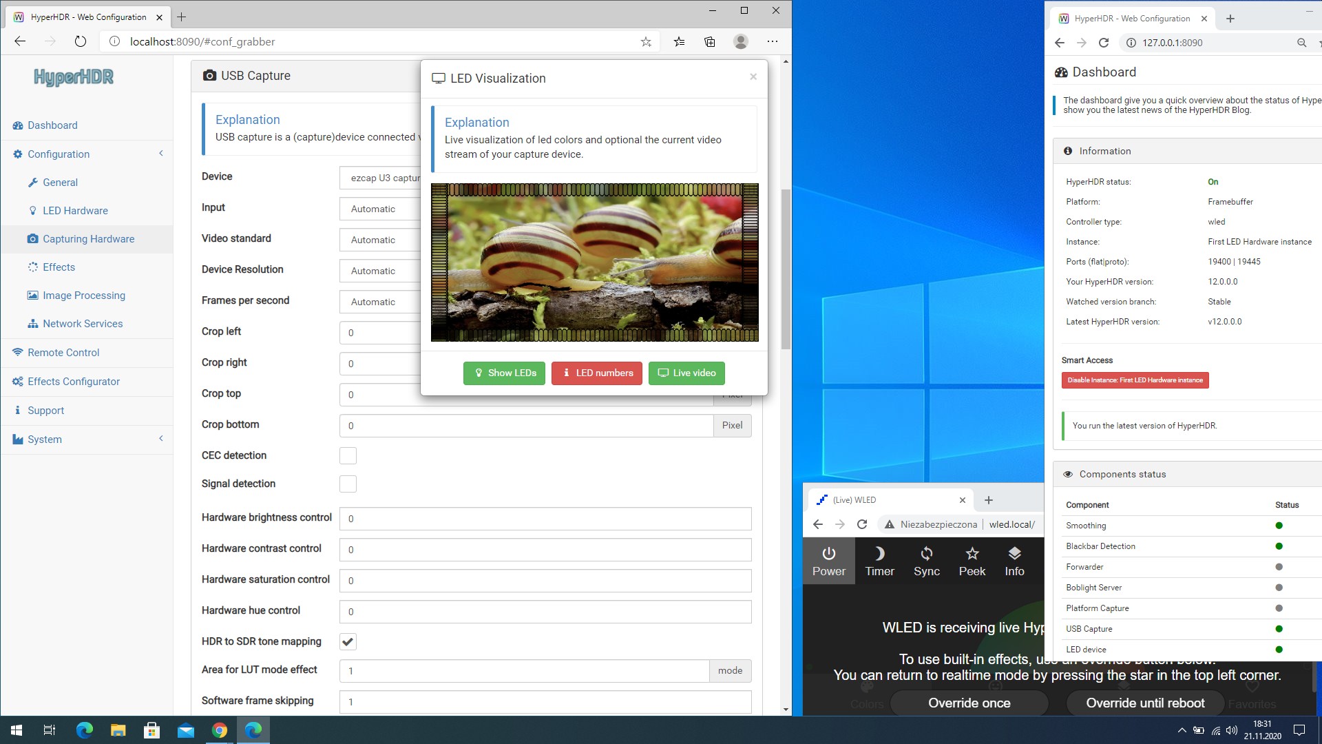 - Overall performance without tone mapping for USB grabbers improved x10 (MJPEG) and x3 (YUV) over Hyperion NG 2.0.0.8A thanks to optimization & using of multi-threading