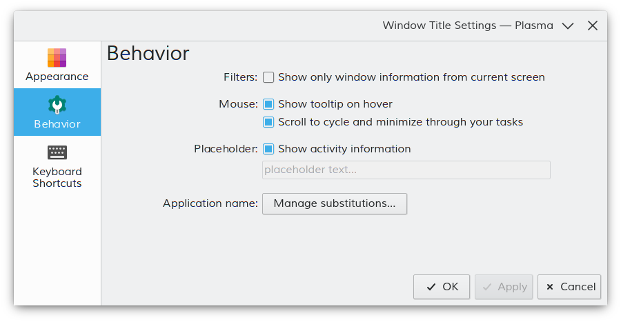This is a Plasma 5 applet that shows the current window title and icon in your panels. This plasmoid is coming from Latte land but it can also support Plasma panels.