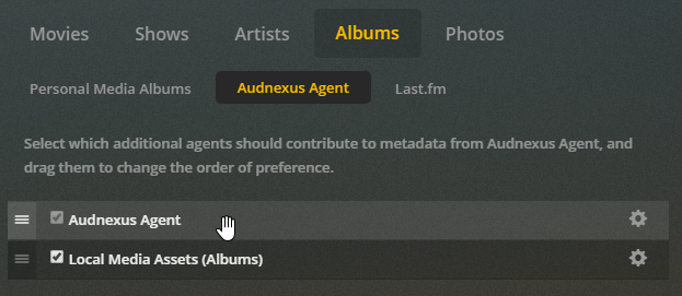 Settings > Agents > Artist > AudiobooksPut Audnexus above Local Media Assets