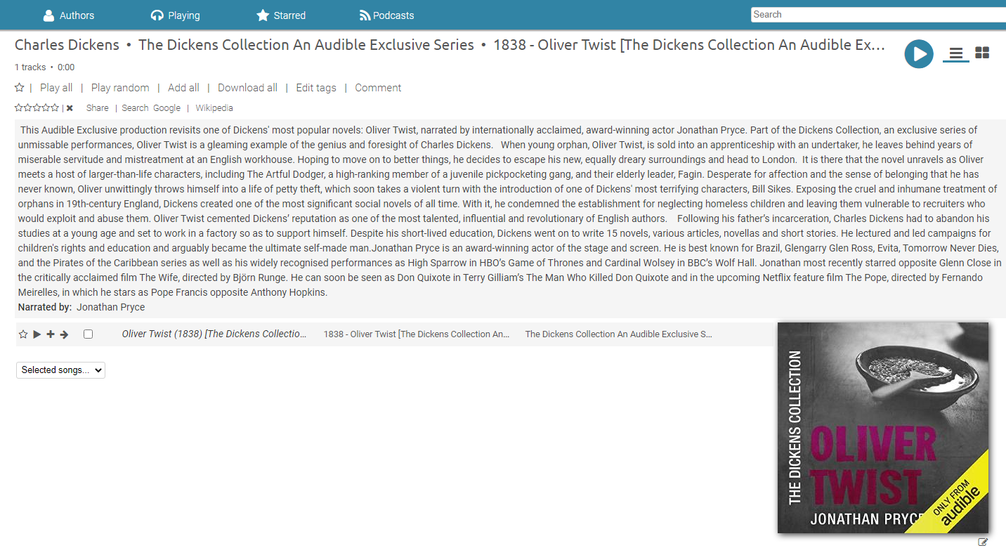 - Smart - Local media files only, but tons of great Audiobook specific features