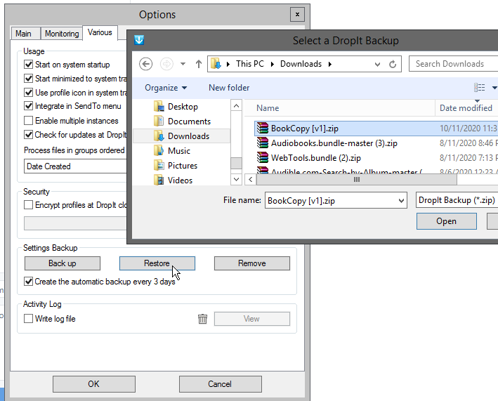 Dropit>Options>Various>Restoreand OpenBookCopy [v1].zip