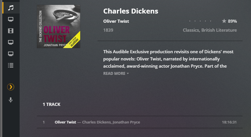 I plan on having a seprate walkthrough that will take you through backing up your Audible .aax files, and converting them to chapterized .M4B files. This guide will work for both mp3 and m4b files, but I prefer chapterized m4b's. Plex handles M4B metadata better than mp3's, some third party players like Prologue and BookCamp can handle the M4B chapter splits and names, and generally having less files helps plex run smoother.
