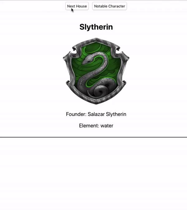 Create a react app that displays the different Harry Potter houses and notable characters in them with two different components <House /> and <Character />.