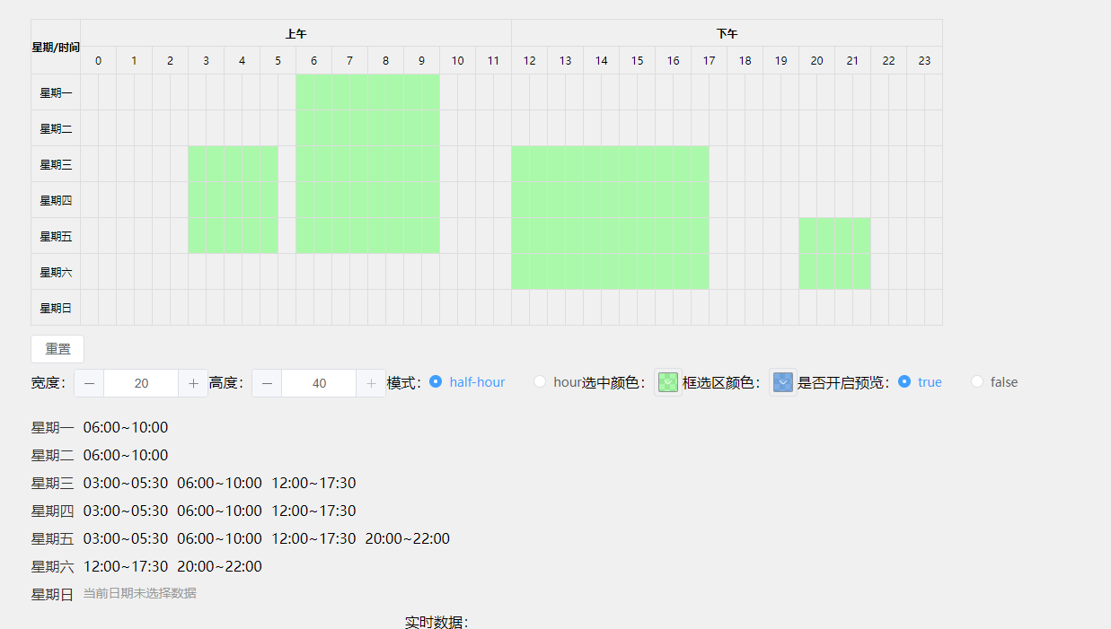 A schedule picker component for vue3. Time period selection supports forward and backward selection, and supports range selection,