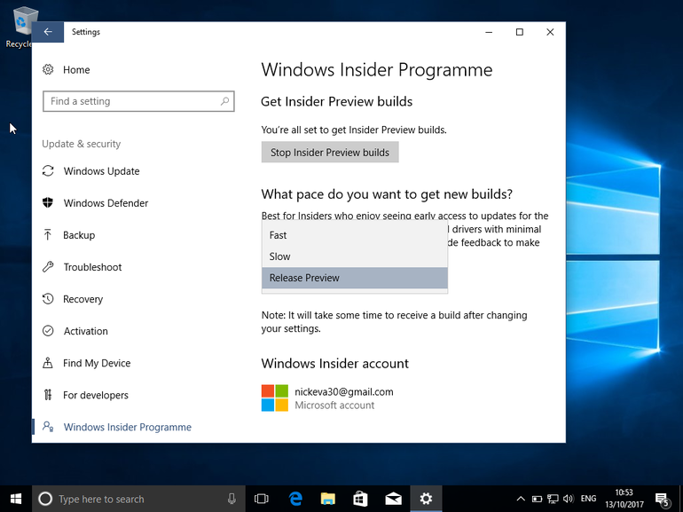 - Open up Windows Update, at the end on the left you should see the Insider Preview program