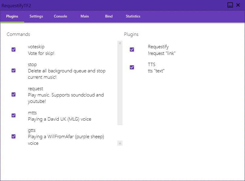 RequesifyTF2 is a simple program for Source Engine based games, which supports plugins, micspam, and alot of custom things.